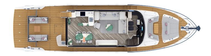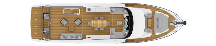 Flybridge, beach area e ponte di prua come ambienti autonomi