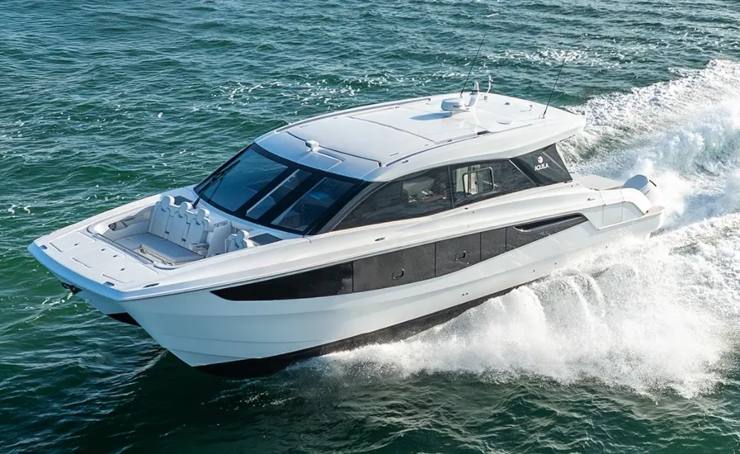 Il 46 Coupe è un power cat da 47’ progettato per crociere veloci con efficienza elevata. L’architettura combina carene gemelle con doppio redan e foil strutturale Hydro Glide® in carbonio, che riduce la superficie bagnata e stabilizza l’assetto oltre i 30 nodi. Le opzioni propulsive (2× Mercury V12 600 hp o 2× Volvo D6 DPI) offrono manovrabilità fine e piattaforma poppiera fruibile. Interni su un unico livello, lounge di prua e due suite con servizi garantiscono comfort reale. Elettronica integrata e domotica semplificano la gestione. Nel segmento 14–15 m si distingue per velocità di crociera sostenute, consumi contenuti e vivibilità superiore.