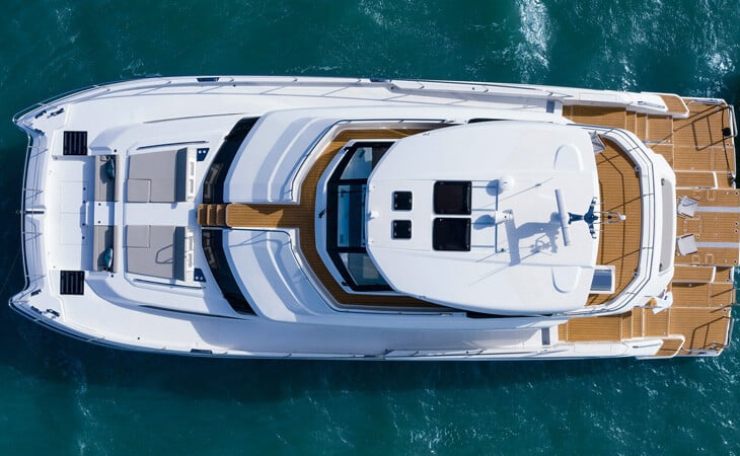 L’ampio ponte che collega i due hull svolge anche funzione di trave strutturale: irrigidisce l’intera piattaforma e contribuisce alla stabilità torsionale. La distanza tra i centri di galleggiamento dei due scafi è tale da generare momenti raddrizzanti molto elevati, con effetti evidenti sulla stabilità trasversale sia in navigazione sia alla fonda, uno dei principali argomenti a favore dei powercat rispetto alle carene monoscafi tradizionali.