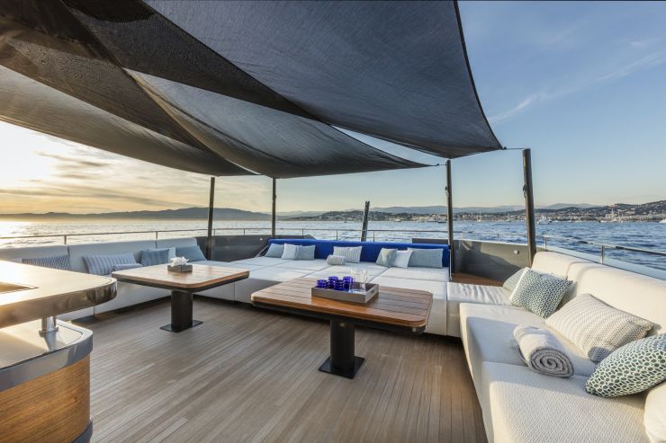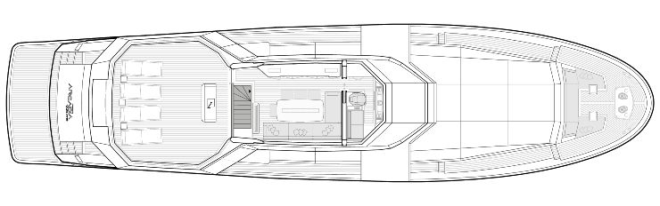 Spicca la possibilità di modificare in modo rapido la destinazione d’uso di porzioni del ponte superiore: il salone panoramico può divenire ambiente chiuso, semi-aperto o completamente integrato all’esterno, trasformandosi da lounge serale a sun deck conviviale. Questa modularità permette a un’unica piattaforma di soddisfare briefing familiari, di rappresentanza o di charter senza dover riprogettare la barca a ogni utilizzo.