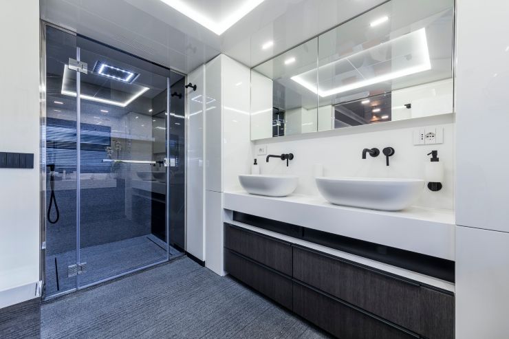 Illuminazione, ombreggiature, tende, aperture scorrevoli, climatizzazione e infotainment multi-zona sono orchestrati da un sistema domotico che offre scenari preimpostati (navigazione, rada, sera, intrattenimento). La prioritizzazione dei carichi aiuta a evitare picchi e a prolungare l’autonomia dei sistemi quando si desidera limitare l’uso dei generatori. La diagnostica centralizzata facilita anche la programmazione degli interventi di manutenzione.