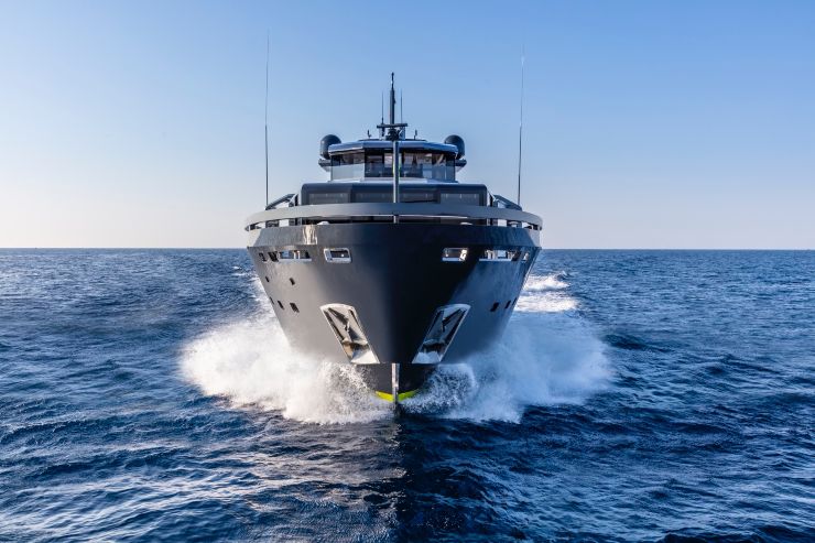 La carena semi-dislocante è impostata per offrire un plateau d’efficienza nella fascia 12–15 nodi. In questo intervallo, l’imbarcazione mostra assetto neutro, rumorosità contenuta e vibrazioni ridotte presso le aree giorno. L’opera viva è studiata per affrontare il chop corto con un angolo di prua che limita gli impatti, mantenendo una traiettoria prevedibile alle correzioni di timone. Il dimensionamento degli stabilizzatori, studiato per l’uso “at anchor” e in trasferimento, consente un abbattimento significativo dei movimenti, incrementando l’utilizzo reale delle superfici aperte anche in condizioni meteo non ideali.