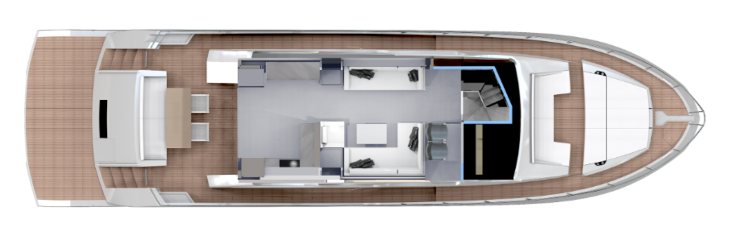Il segmento evolve verso flybridge sempre più attrezzati, interni più panoramici e sistemi di supporto alla conduzione e al comfort (stabilizzazione, integrazione elettronica, controllo assetto). Il 66 intercetta questi driver con coerenza: fly come area principale, salone luminoso, layout completo e tecnologie orientate a semplificare la gestione.