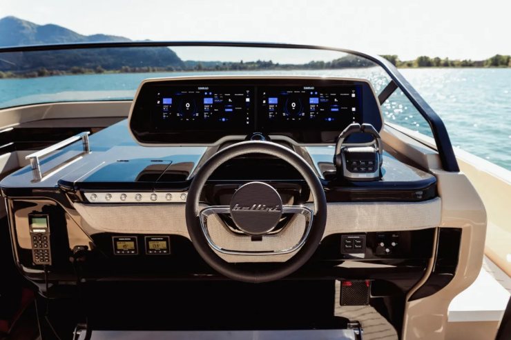La plancia accoglie MFD doppi (es. Garmin, Raymarine, Simrad a seconda della commessa), integrazione EVC per engine data, autopilota e joystick. Sono disponibili radar, surround view, visione diurna/notturna, moduli AIS. La predisposizione per generatore e aria condizionata è prevista; l’elettronica di bordo dialoga con sistemi di domotica per scenari luce, gestione carichi e telemetria.