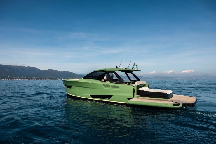 - Tipologia: maxi-walkaround open con hard-top strutturale e terrazze laterali abbattibili.
