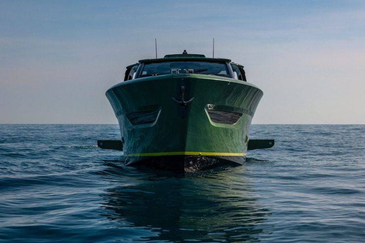 Le prese e i passaggi di carena sono stati disegnati con attenzione a cavitazioni e turbolenze: gli organi bagnati lavorano in regime pulito alle andature tipiche. La posizione delle trasmissioni arretra la spinta e contiene il beccheggio; il baricentro scende grazie a sala macchine e impianti posizionati in basso. È una piattaforma che guida piatta e “sente” poco il vento apparente.