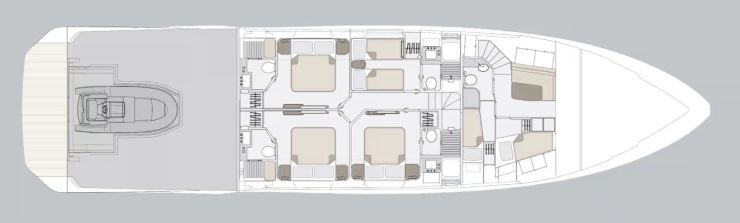- Livello mare: beach area e piattaforma di poppa con accesso diretto al mare e al garage per il tender.