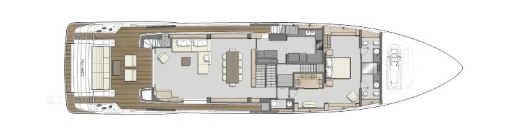 Ponte principale: suite armatoriale sul ponte principale e gestione dei flussi