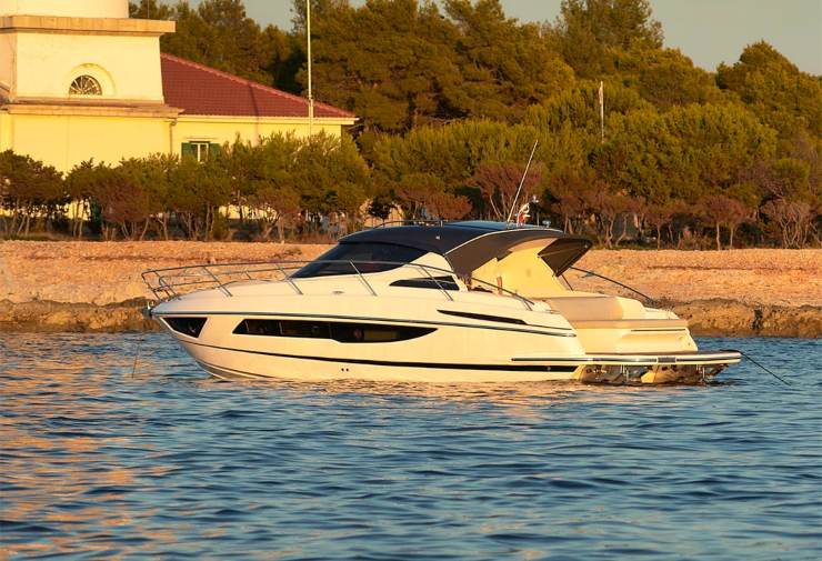 Il suo carattere nasce dalla somma di scelte tecniche coerenti: carena deep-V per assorbire l’onda e mantenere la rotta, masse distribuite per evitare reazioni nervose, propulsione entrofuoribordo per garantire spunto e rendimento, e una sovrastruttura con hardtop che lavora non solo sullo stile ma anche sulla protezione e sulla vivibilità. In pratica, è una barca che “regge” l’uso intenso: non si limita a promettere numeri, ma punta a costruire una sensazione di solidità e controllo che si apprezza nel tempo, stagione dopo stagione.