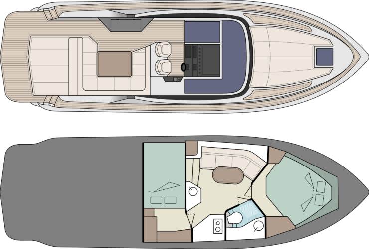 Focus Power 36 interpreta i 36 piedi plananti con un’impostazione netta: non è una semplice dayboat travestita da cruiser, né una piccola “gran turismo” appesantita da volumi inutili. È una piattaforma pensata per chi vuole navigare davvero—con velocità e precisione—ma pretende anche un’ospitalità credibile per il weekend: due cabine utilizzabili, un bagno completo e una coperta che resta fruibile in ogni fase d’uso, dal porto alla rada, fino al trasferimento costiero.