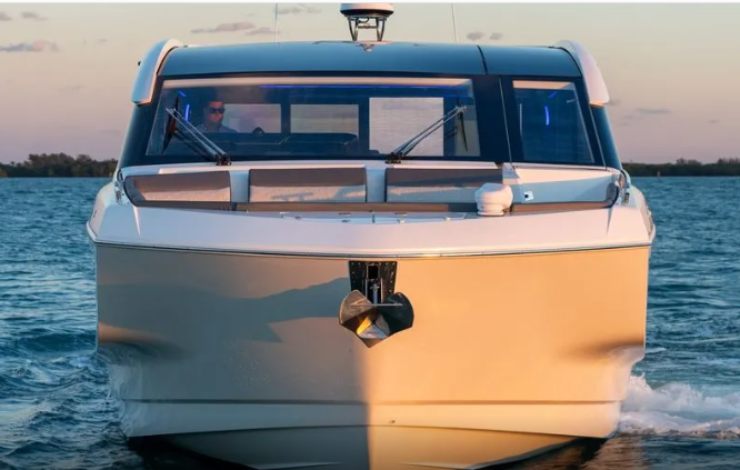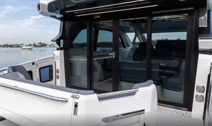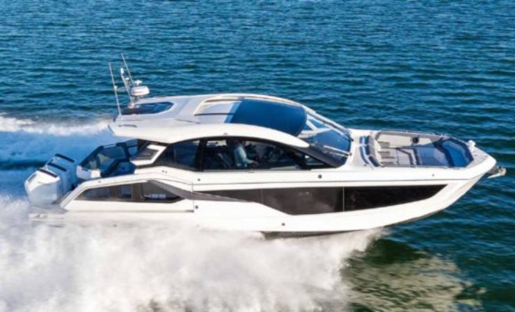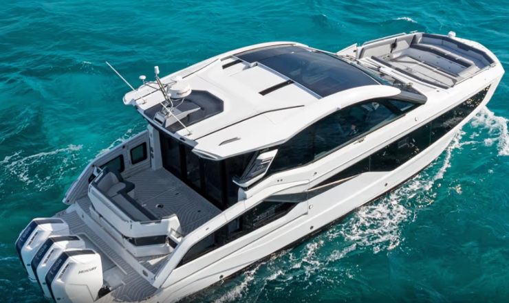 - Cruisers Yachts 42 GLS OB – 12,9–13,4 m, fino a tripli Mercury 450R, Vmax ~45–52 mph a seconda dei setup, terrazze laterali e layout “social”. Meno spinta in assoluto rispetto alla tripla 600, ma rapporto dimensioni/prestazioni molto competitivo.