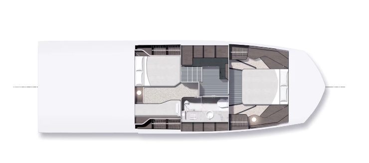 La firma Galeon è riconoscibile nell’attenzione ergonomica e nello sfruttamento “dinamico” della coperta: terrazze laterali apribili, passavanti protetti, prua fruibile, connessione fluida tra aree sociali interne ed esterne. L’approccio ingegneristico mette la modularità al servizio dell’uso reale: l’assetto cambia in pochi gesti, senza sacrificare robustezza strutturale o la qualità dei flussi d’acqua lungo la carena. Il 435 GTO incarna questa visione applicandola a un’architettura fuoribordo performante e a un layout a due cabine con finiture di livello superiore.