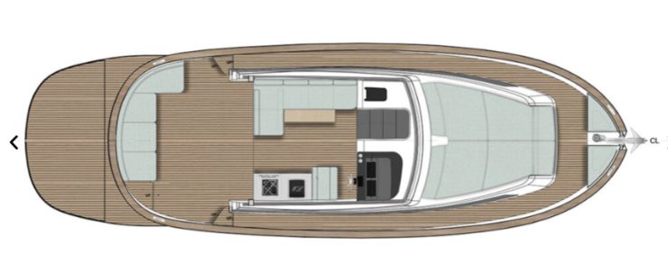 Il pozzetto accoglie una dinette modulare, la piattaforma poppiera facilita il bagno e le operazioni con il tender, e le porte a libro verso il salone trasformano, in pochi secondi, due ambienti in un unico grande spazio conviviale. La cucina a livello ponte elimina barriere verticali per chi cucina e mantiene la socialità con chi vive l’esterno.