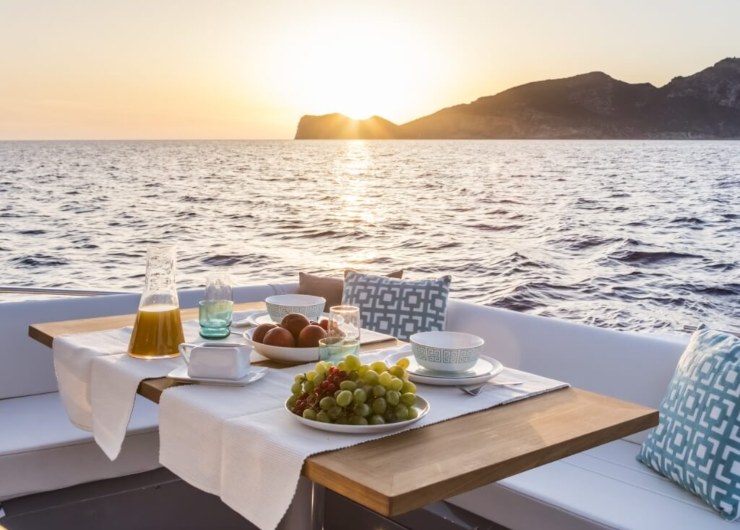 La barca nasce per coppie o nuclei familiari che ricercano weekend estesi, con eventuale ospite: cambusa esterna completa, frigoriferi sdoppiabili, bagno “residenziale”. Il comfort a bordo è potenziato da air-conditioning, impianto audio premium multi-zona e ombreggiamento modulare prua-poppa.