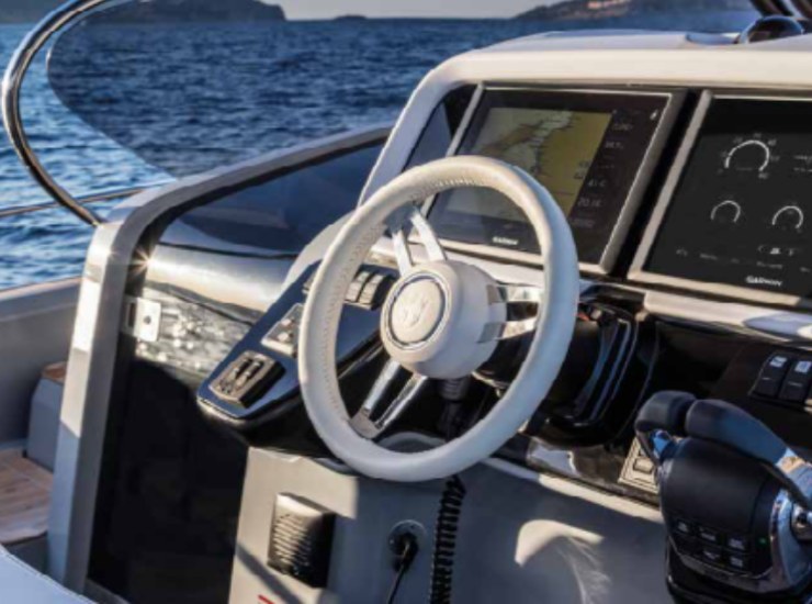 - Navigazione: multifunzione (Garmin/Raymarine a seconda dei mercati), radar opzionale a cupola, autopilota, VHF DSC e AIS integrabile.