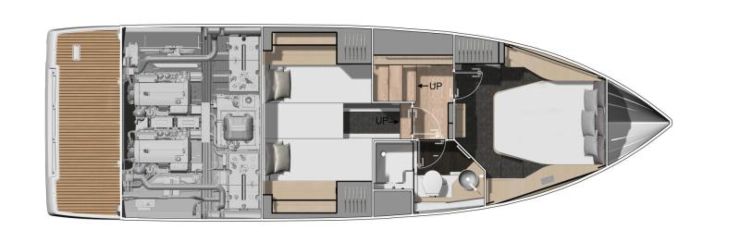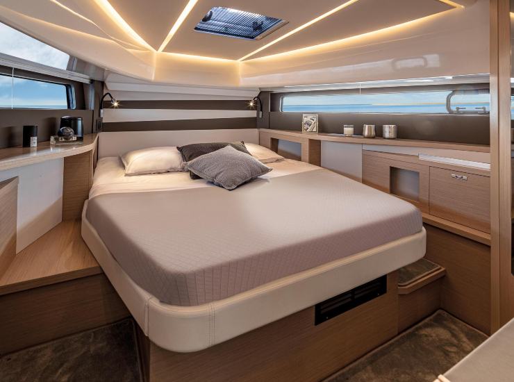 La percezione premium a bordo non dipende solo da legni o rivestimenti: spesso nasce da fattori più sottili, come la gestione della luce, l’altezza utile, l’ordine visivo e la continuità delle superfici. La DB/37 lavora bene su questo piano, grazie a un equilibrio tra finestrature e illuminazione artificiale, e a un layout che evita la sensazione di “sottocoperta sacrificato”. È un lusso contemporaneo: pulito, funzionale, piacevole senza eccessi.