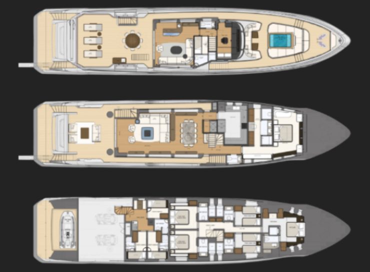 La barca parla a tre profili: l’armatore che vuole un superyacht gestibile ma non “ridotto”, il charter manager che cerca spazi fotografabili e beach club credibile, e la proprietà che utilizza lo yacht anche come piattaforma di relazione e ospitalità. In tutti i casi, la chiave è la stessa: una tri-deck che si vive senza attriti, con percorsi chiari e funzioni ben separate.