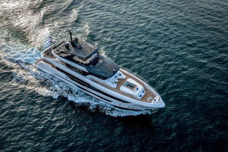 In pratica, la barca è progettata per rendere al meglio nella fascia di crociera più utilizzata: quell’area tra i 10 e i 14 nodi in cui si guadagna autonomia, si riducono vibrazioni e si mantiene un comfort superiore con mare in peggioramento. È un approccio particolarmente adatto a un tri-deck, dove la vivibilità dei ponti esterni e la stabilità della piattaforma incidono direttamente sulla “qualità di vita” a bordo.