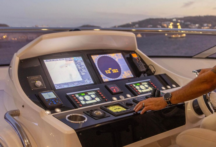 La plancia integra suite elettronica full-glass con radar doppi, ecoscandaglio multifrequenza, autopilota evoluto, cartografia ridondata e reti dati in failover. La logica di bordo separa i circuiti critici (comando, sicurezza, propulsione) dai servizi ospiti, mantenendo diagnostica e allarmi a livelli distinti a prova d’errore.