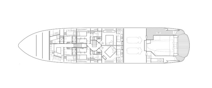 - Spazi ben calibrati fra interno ed esterno, con aree caratterizzanti (prua wellness e sundeck sociale).