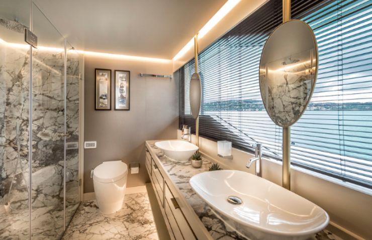 Le cabine ospiti, quando progettate con intelligenza, privilegiano letti fruibili, bagni comodi e un isolamento acustico coerente con la missione di crociera. In un explorer, dormire bene non è un optional: è ciò che permette di fare miglia senza stanchezza. Il valore è nella capacità di mantenere una qualità “hotel-like” anche con mare formato, grazie a massa, isolamento e stabilizzazione.