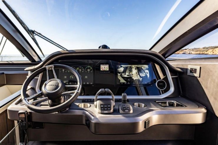 La timoneria principale e quella del fly utilizzano display multi-touch a integrazione spinta: cartografia, radar, dati motore, condizioni di carica delle batterie e gestione dei servizi convivono in schermate contestuali. Il power management assegna priorità alle utenze “hotel” per mantenere comfort costante, mentre la rete sensori (livelli, sentine, temperature) alimenta un sistema di allarmi chiaro e poco invasivo. L’ergonomia dei comandi riduce i movimenti superflui del timoniere in uscita/entrata dai porti.