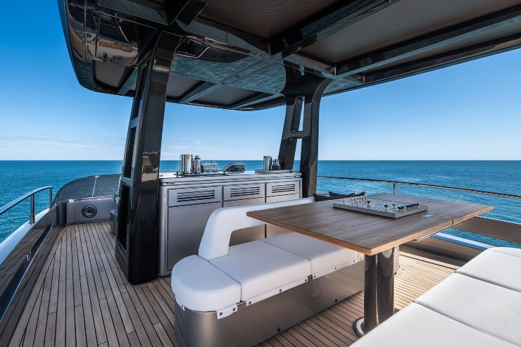 Nel panorama competitivo il GTX80 si colloca in una zona precisa del mercato premium. Non appartiene al mondo dei flybridge puri dedicati alla crociera tranquilla, né a quello degli open estremi pensati quasi esclusivamente per la velocità. Il suo territorio naturale è quello dei grandi sport yacht abitabili, dove contano non solo le prestazioni, ma anche la capacità di offrire una forte esperienza di bordo.