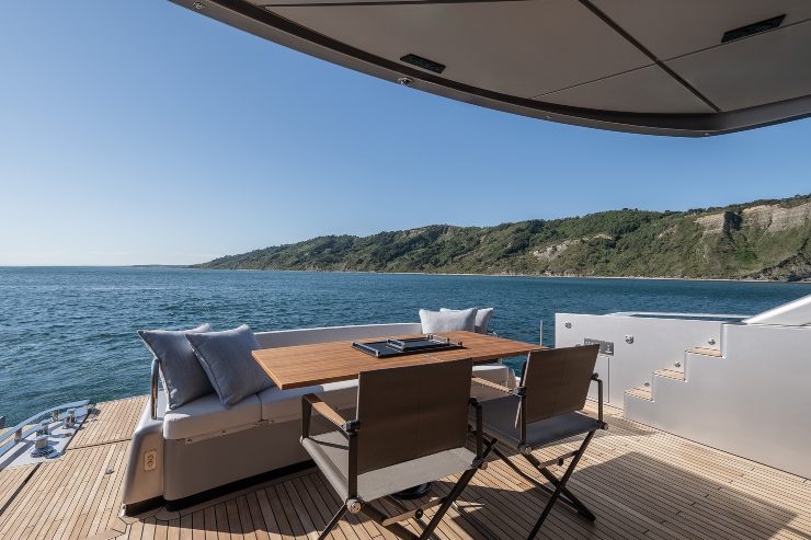 I confronti più pertinenti possono essere fatti con modelli come il Princess S80, il Sunseeker 75 Sport Yacht, il Riva Perseo Super e alcune proposte lifestyle ad alte prestazioni presenti nel segmento. Rispetto a questi rivali, il Pershing gioca carte precise: una beach area particolarmente sviluppata, una relazione interno-esterno molto fluida, un’identità di marchio ancora fortissima e una configurazione tecnica che privilegia usabilità e rapidità complessiva.