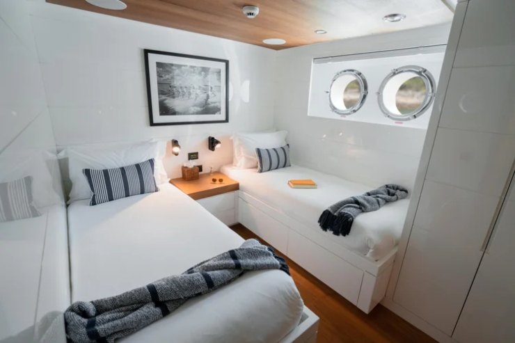 - Layout ospiti: 5 cabine (armatoriale sul ponte principale, 2 VIP, 2 twin) per 10 ospiti