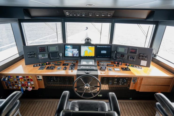 La plancia adotta una configurazione multi-display con radar a doppia portata, ecoscandaglio con discriminazione fondali, interfaccia ECDIS e AIS integrato. Il pilota automatico lavora su profili di rotta programmabili con deviazioni immediate per avoidance. Le fonti di posizione sono ridondate (GNSS e sensori inerziali), con UPS dedicati ai sistemi critici.