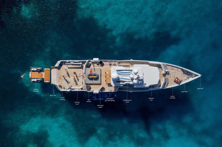 - Sicurezza e compliance: compartimentazioni, porte stagne, sistemi antincendio a gas in sala macchine e rivelazione fumi/calore distribuita. Il progetto è commisurato alle classi e normative di riferimento per il charter.