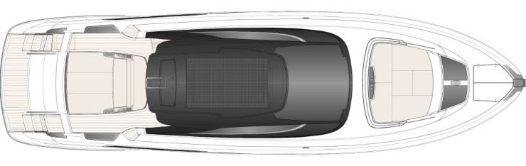 Questi parametri anticipano un’impronta in acqua stabile, con baricentro longitudinale curato per bilanciare il peso dell’hard-top e del garage poppiero. Le relazioni fra LOA e LWL indicano una carena pensata per ridurre gli angoli di trim in accelerazione e contenere le resistenze di forma in crociera.