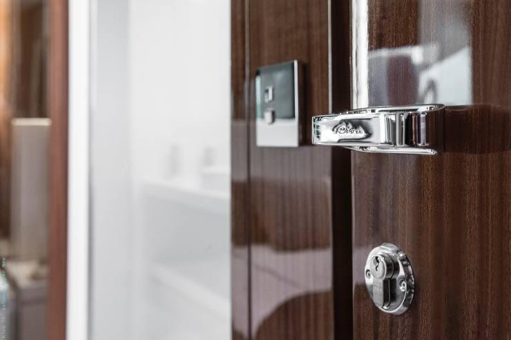 L’illuminazione è affidata a strip LED diffuse, spot incassati e luci d’accento integrate negli arredi. La temperatura di colore è stata scelta per esaltare le tonalità dei materiali e garantire un’atmosfera accogliente, sia in modalità diurna sia serale. L’isolamento acustico delle paratie e dei cielini permette di mantenere un clima di quiete anche con i generatori in funzione o durante la crociera a velocità sostenuta.