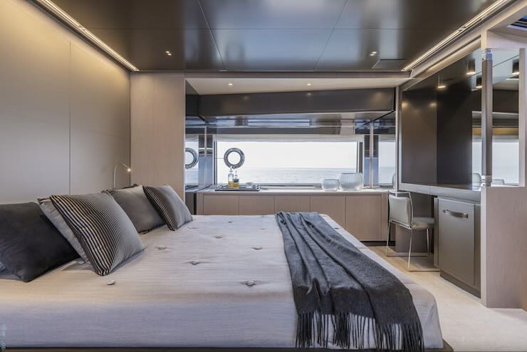 Nel segmento sub-30m si osservano tre vettori: volumi più ampi (wide body, prua fruibile, hard-top abitabili), tecnologie di stabilizzazione “combo” (pinnette + gyro) e elettronica integrata con gestione impianti olistica. Il 90’ Argo incarna tutti e tre, senza rinunciare all’identità estetica.