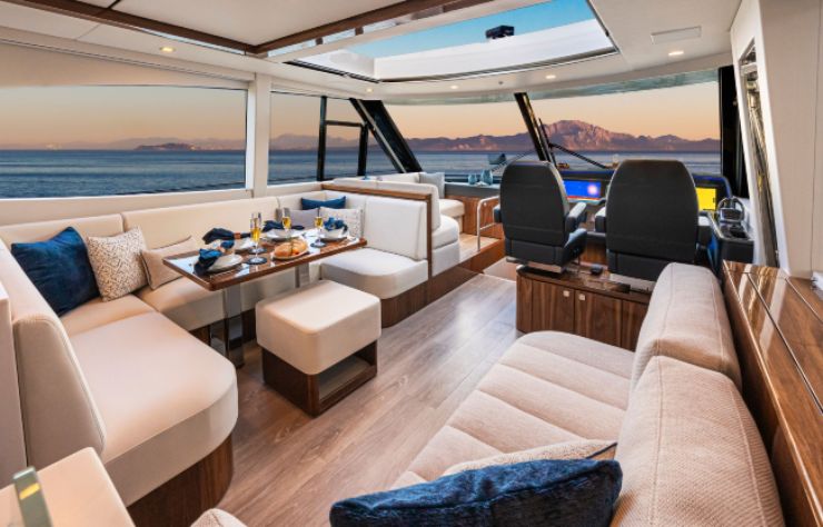 La presenza del joystick e di logiche di controllo avanzate permette di affrontare porti affollati e ormeggi stretti con serenità. Questo aspetto non è secondario: molti armatori scelgono uno sport yacht per usarlo spesso e senza stress, e la semplicità in manovra diventa una leva determinante, soprattutto quando l’equipaggio è ridotto o quando la barca viene condotta direttamente dal proprietario.