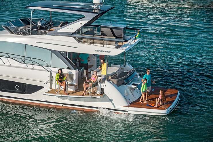 Il modello interpreta la filosofia Schaefer in chiave contemporanea: non soltanto finiture e scenografia, ma una struttura coerente con l’uso quotidiano, in cui ergonomia, percorsi e razionalità impiantistica giocano un ruolo centrale. La 600 integra soluzioni oggi molto richieste — ali laterali trasformabili, plancetta submersible, propulsione assistita — mantenendo un’impostazione “da barca vera”, progettata per navigare con continuità e non soltanto per l’ormeggio in rada.