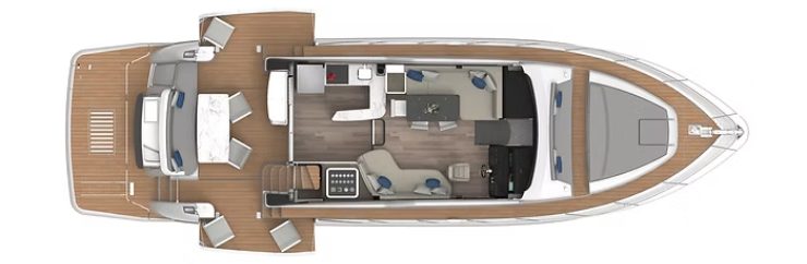 Nel confronto con la concorrenza, la 600 non cerca necessariamente l’ultima prestazione o l’effetto “design manifesto”: si posiziona come yacht di alta fruibilità, pensato per armatori che vogliono vivere il mare con ospiti, con un equilibrio tra spettacolo e facilità d’uso. È un flybridge che ridisegna i suoi confini, e lo fa con una logica ingegneristica chiara: aumentare lo spazio utile, semplificare le manovre e rendere la permanenza a bordo più ricca, più comoda, più naturale.