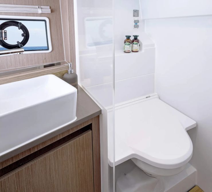 L’impiantistica è dimensionata per supportare un utilizzo intensivo tipico delle crociere estive. Il quadro elettrico principale è ben accessibile e consente una gestione chiara dei circuiti, con linee dedicate ai carichi principali e sistemi di protezione adeguati. Su molte unità si trovano caricabatterie automatici, inverter e gruppi elettrogeni, che permettono di alimentare climatizzazione, elettrodomestici e utenze di bordo anche in rada, senza dipendere dalla banchina.