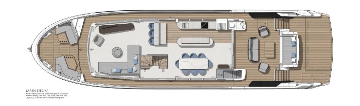 - Flessibilità di layout: armatoriale su main deck o sottocoperta, sky lounge trasformabile, beach club fruibile.
