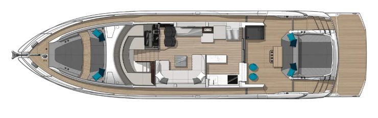 - Princess V65: grande comfort sottocoperta e carena molto efficiente; impostazione più “cruising” nelle finiture interne.